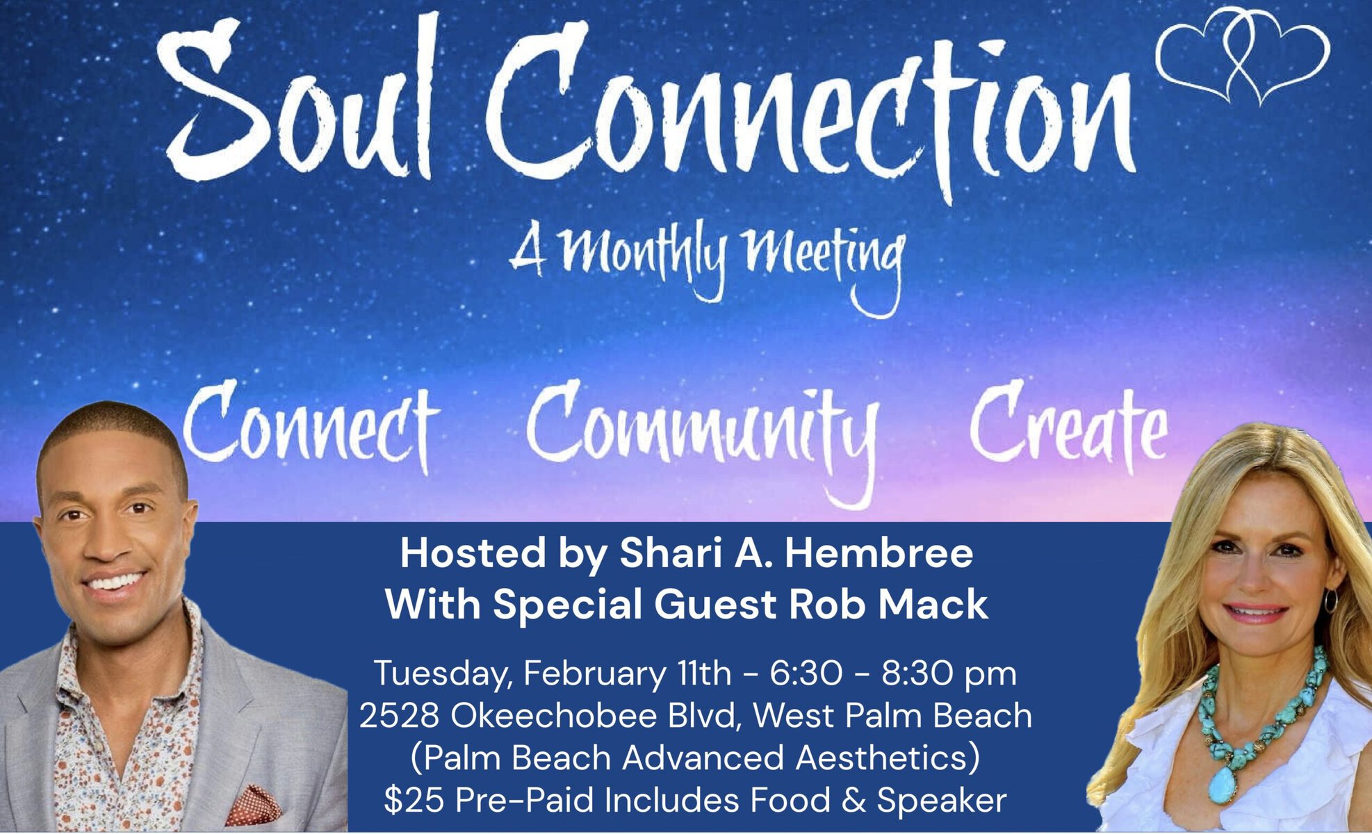 Soul Connection Monthly Meeting. Click on the link below to sign-up. Join us this month for a very special evening with Rob Mack!
